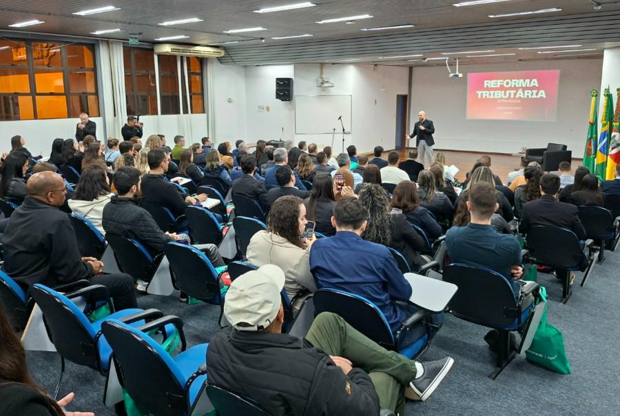 O Núcleo de Contabilistas da ACIST-SL realizou um evento especial para celebrar o Dia do Contador, comemorado na última segunda, 22. O local escolhido foi o auditório da Unitec, no Tecnosinos, que ficou lotado para a palestra: 'Reforma Tributária Estratégica – Como se preparar para as mudanças', ministrada por Gustavo Caletti, empresário, professor, palestrante, contador, mentor de negócios e conselheiro do CRC/RS.