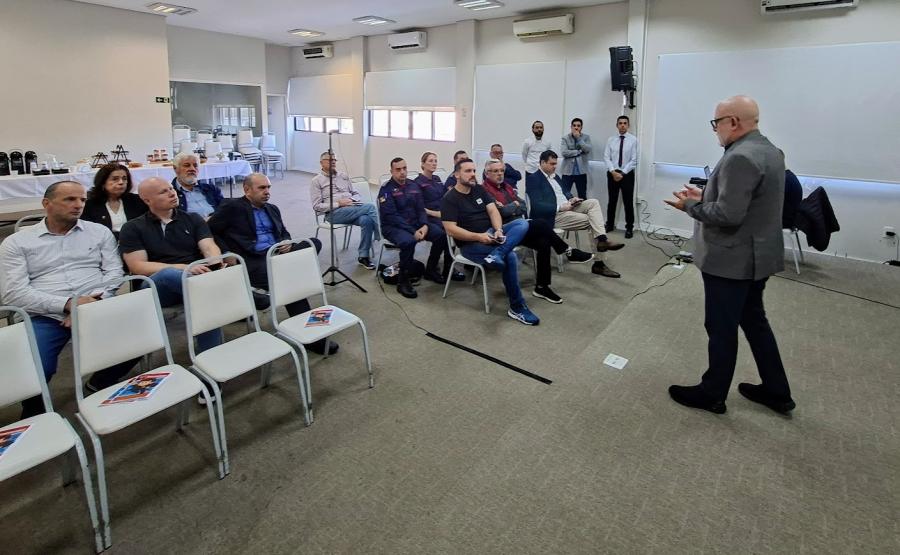 Em seguida, o diretor de Segurança Pública da ACIST-SL e presidente do CONSEPRO São Leopoldo, Rogério Daniel da Silva, destacou que a segurança é obrigação do estado, mas que a responsabilidade é de toda a sociedade. Enfatizou que o modelo de trabalho em parceria entre as forças de segurança e a comunidade empresarial tem reflexo direto na redução de crimes violentos, como roubos e homicídios. “São Leopoldo se tornou um case de sucesso na aplicação dos recursos do Programa de Incentivo ao Aparelhamento da Segurança Pública, o Piseg. Já foram investidos quase R$ 8,5 milhões em equipamentos, armamentos e veículos para reforçar a atuação das forças policiais”, ressaltou Rogério.
