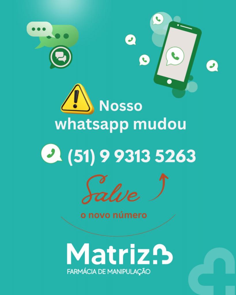 Informamos que o nosso número tradicional de WhatsApp mudou. A partir de novembro/25, o atendimento via whatsapp será realizado exclusivamente pelo novo número: (51) 9 9313 5263. Seguimos, reforçando nosso compromisso com a qualidade no relacionamento, mantendo o mesmo padrão de excelência, cuidado e atenção que sempre oferecemos.