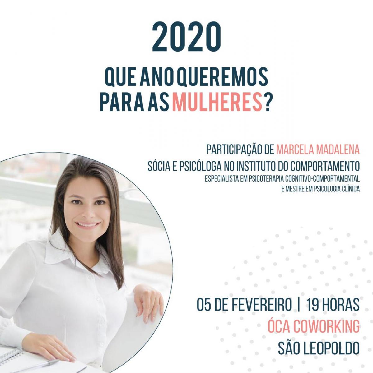 2020: Que ano queremos para as mulheres? Este é o titulo da palestra que acontece nesta quarta-feira (5), na Óca Coworking, das 19h às 21h. O evento é organizado por formandas do curso de especialização em Empreendedorismo Criativo em Eventos da Universidade Feevale e é voltado para pessoas quem se identificam com o gênero feminino.