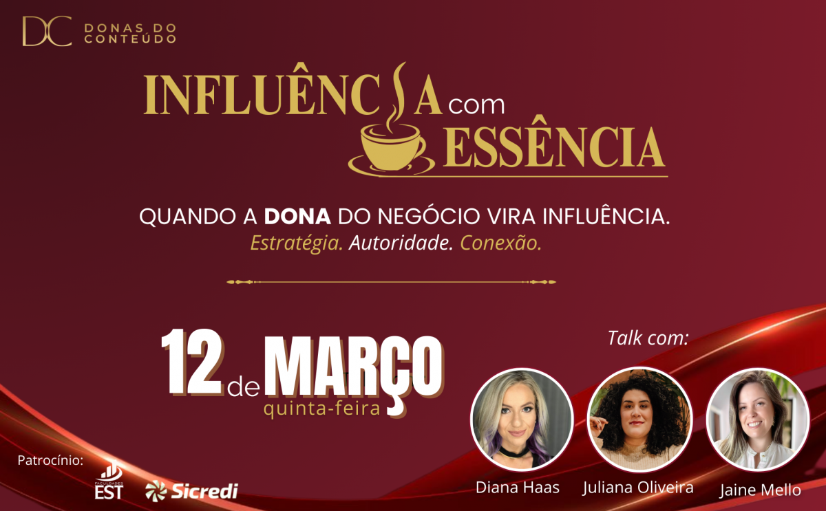 As associadas Ana Kauer e Pâmela Maia convidam a comunidade para a abertura das atividades de 2026 do projeto 'Donas do Conteúdo'. O evento, que tem como objetivo fortalecer o empreendedorismo feminino por meio de conhecimento e conexões reais, terá como tema central o painel "Influência com Essência".